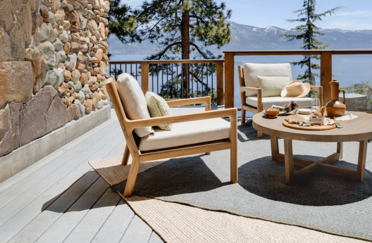 - Teak patio sets and sectionals provide the perfect spot for movie nights or sipping hot cocoa with loved ones.