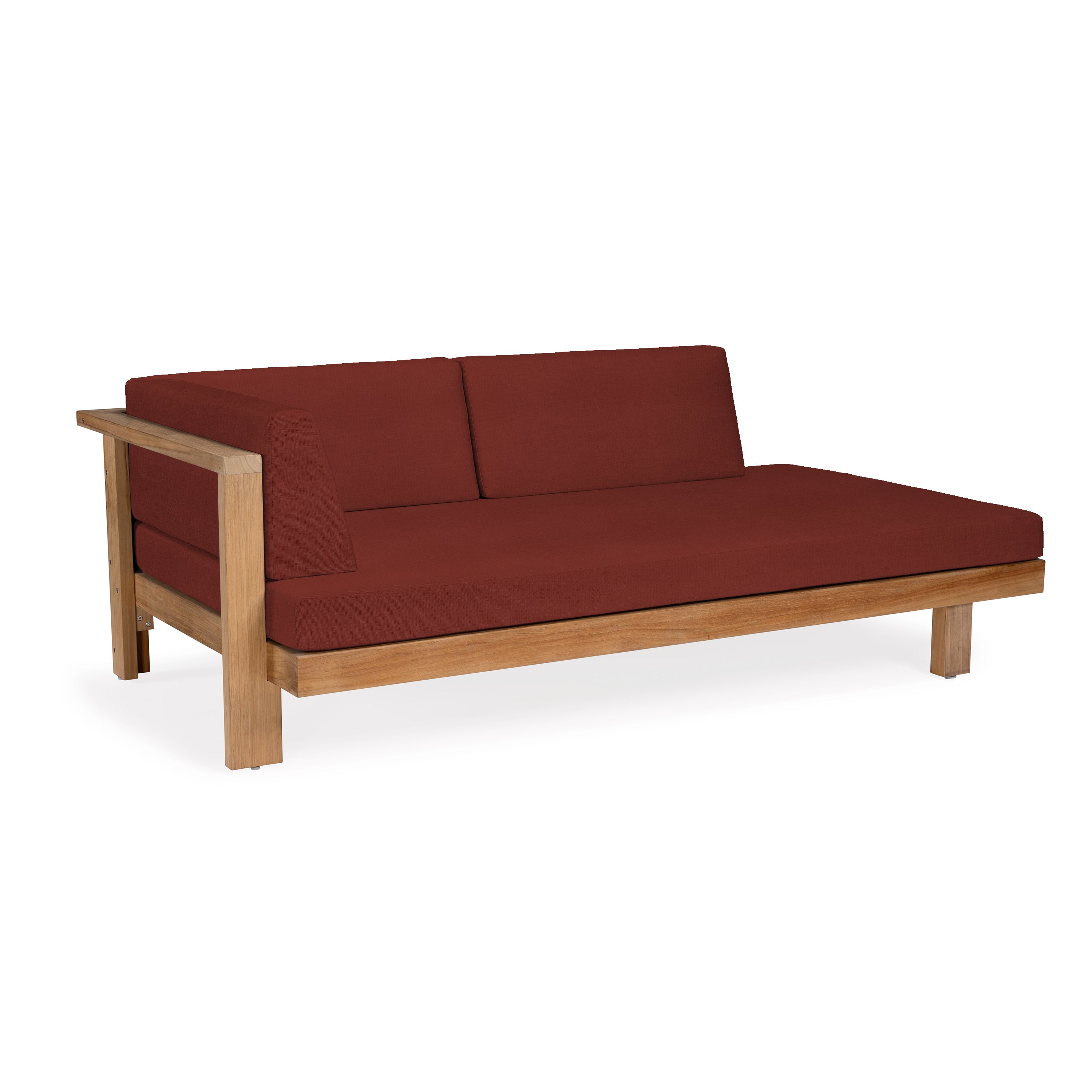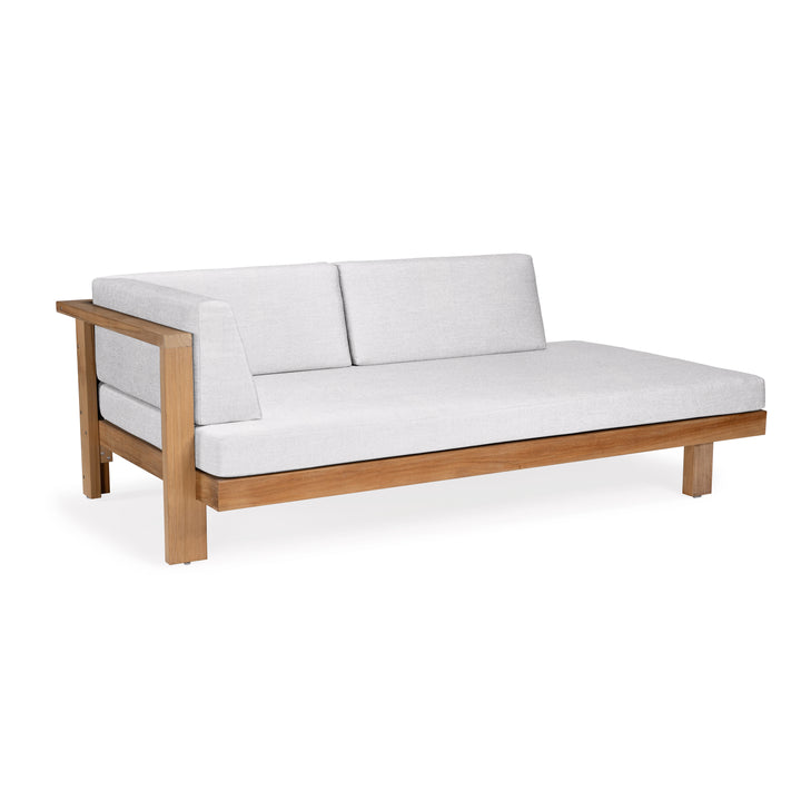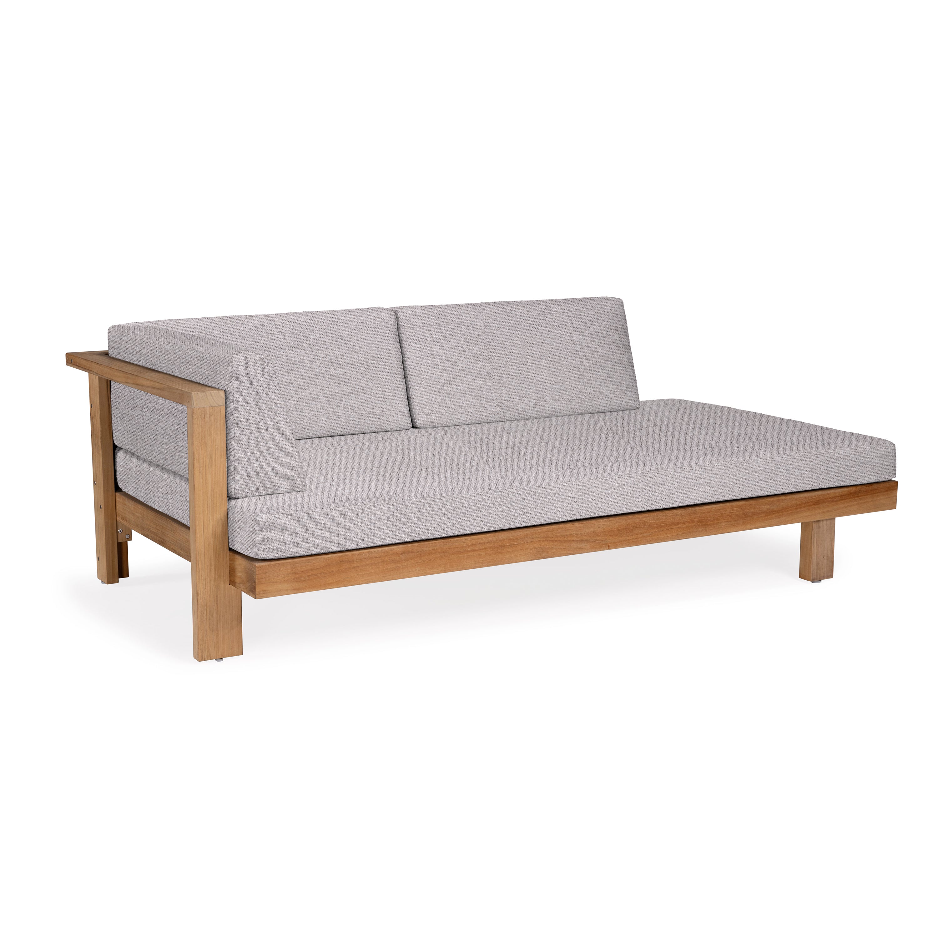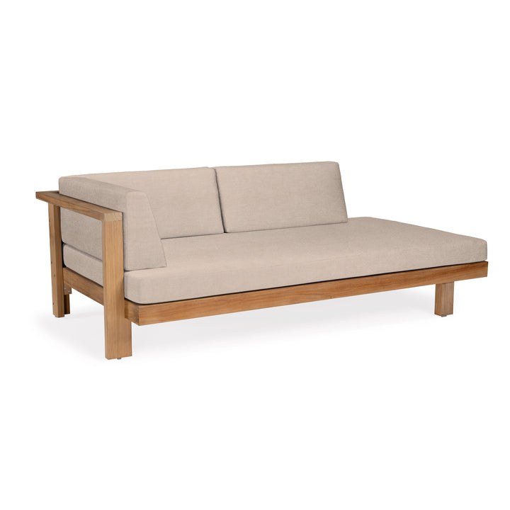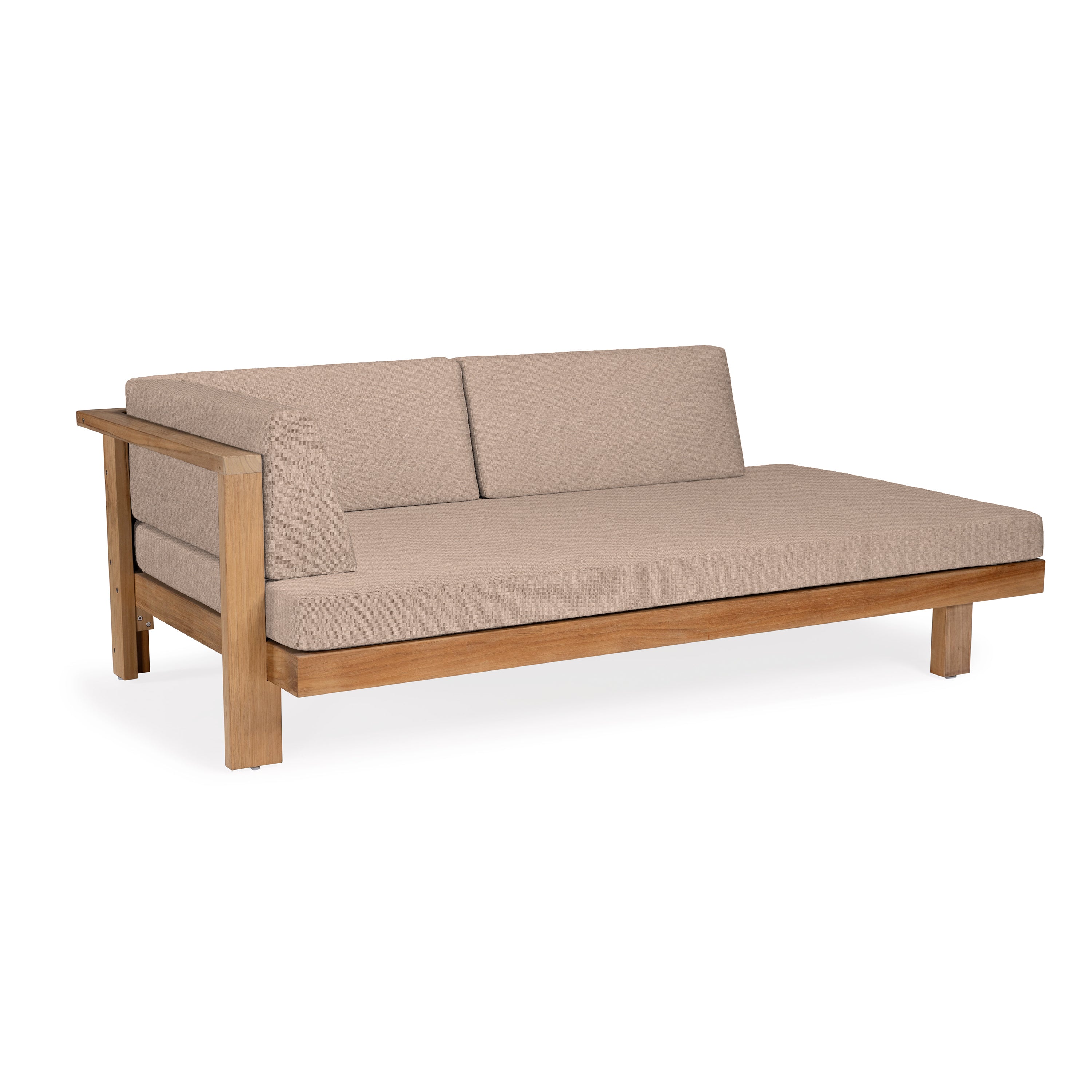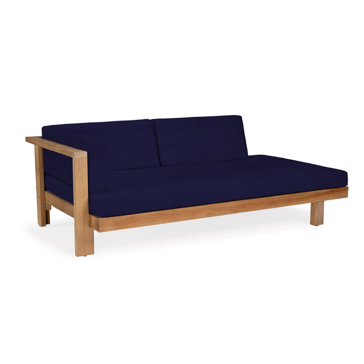 The Cabo Teak Daybed is a stunning piece of outdoor furniture that exudes sophistication and elegance. Part of the Cabo Lounge Seating Collection. Made with high-quality a-grade teak, this daybed is built to last and withstand the outdoor elements. The use of teak not only adds to the durability of the daybed, but it also gives it a natural and organic look that will complement any outdoor living space. The daybed is designed with a prominent platform, supported by clean, minimal legs and a low profile frame structure. This unique design allows the user to fully utilize the huge lounging area, making it perfect for relaxing with family and friends or enjoying some alone time in the sun. To ensure maximum comfort, the Cabo Teak Daybed comes with comfortable cushions that are perfect for long periods of lounging.