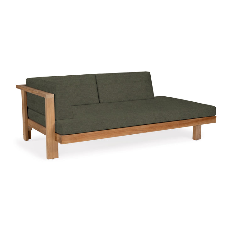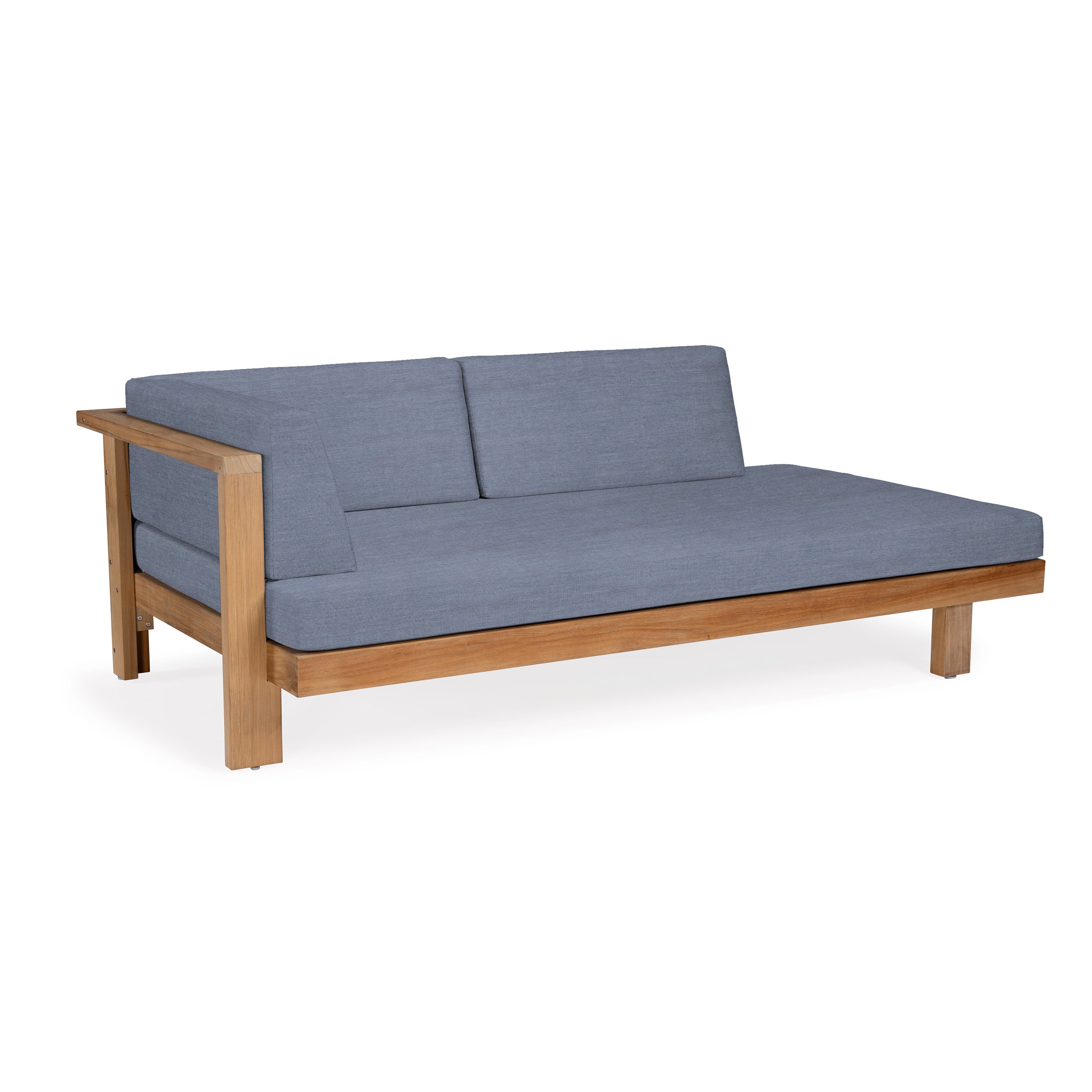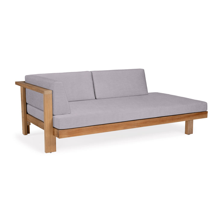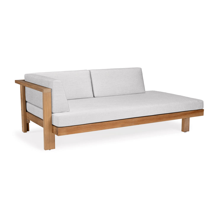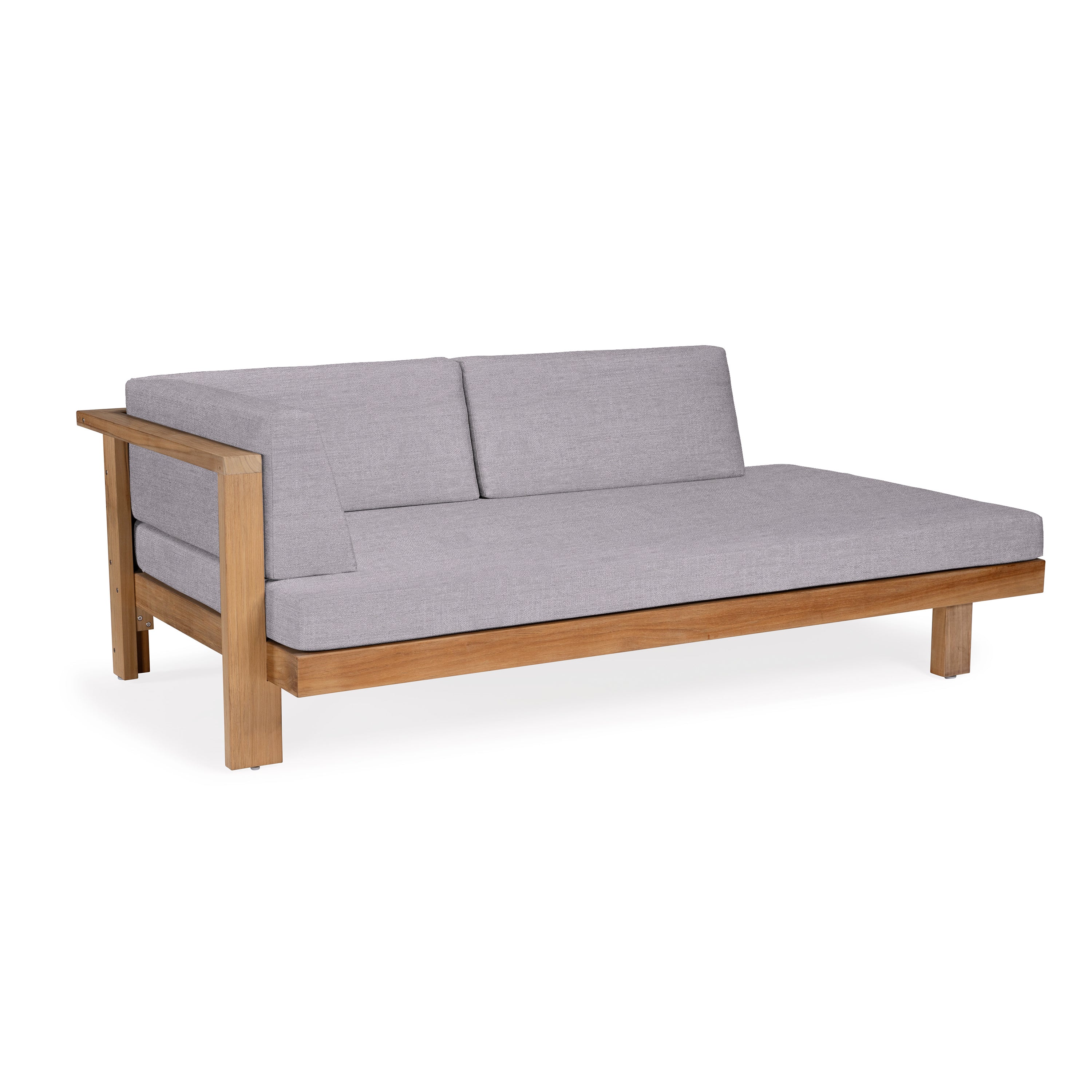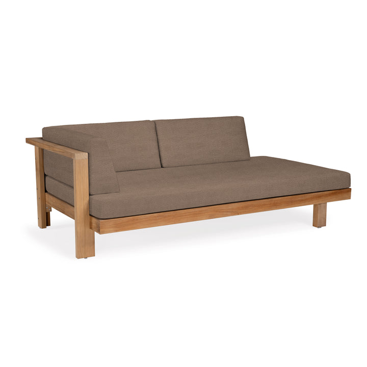 The Cabo Teak Daybed is a stunning piece of outdoor furniture that exudes sophistication and elegance. Part of the Cabo Lounge Seating Collection. Made with high-quality a-grade teak, this daybed is built to last and withstand the outdoor elements. The use of teak not only adds to the durability of the daybed, but it also gives it a natural and organic look that will complement any outdoor living space. The daybed is designed with a prominent platform, supported by clean, minimal legs and a low profile frame structure. This unique design allows the user to fully utilize the huge lounging area, making it perfect for relaxing with family and friends or enjoying some alone time in the sun. To ensure maximum comfort, the Cabo Teak Daybed comes with comfortable cushions that are perfect for long periods of lounging.