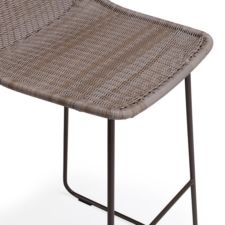 The Georgia Wicker Outdoor Bar Chair in Natural combines timeless craftsmanship with a warm, inviting aesthetic. Handwoven with durable all-weather wicker in a neutral natural tone, this bar-height chair is designed to complement a variety of outdoor settings. Its supportive backrest and sturdy frame ensure lasting comfort, making it perfect for poolside bars, patios, or entertaining areas. Pair it with any of our bar tables for a cohesive look that elevates your outdoor entertaining experience.
