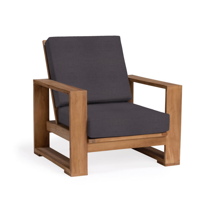 The Havana Teak Outdoor Club Chair is a piece of outdoor furniture that is inspired by mid-century style. It features thin framework and minimalist risers on the bottom, combined with wide arms that create a unique and stylish look. The frame is made with a-grade teak, ensuring durability and resistance to outdoor elements. The chair comes with comfortable cushions that are covered with Neptune fabric, adding a touch of luxury and sophistication to the design. The Havana Teak Outdoor Club Chair is a perfect choice for those who appreciate both style and comfort in their outdoor living spaces. Part of the Havana Lounge Seating Collection, this Club Chair is the perfect addition to any outdoor space