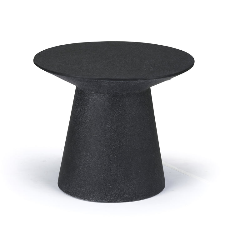 The Holly Concrete Side Table is the perfect addition to any modern living space. With its sleek black finish, this table exudes sophistication and style. Made from a durable combination of fiberglass and concrete, the Holly is both sturdy and long-lasting. The unique blend of materials creates a sleek, contemporary look that will complement any decor style. The minimalist design features clean lines and a smooth surface, making it easy to clean and maintain. Whether used as a standalone accent piece or paired with other furniture, the Holly Concrete Side Table is the epitome of modern design.