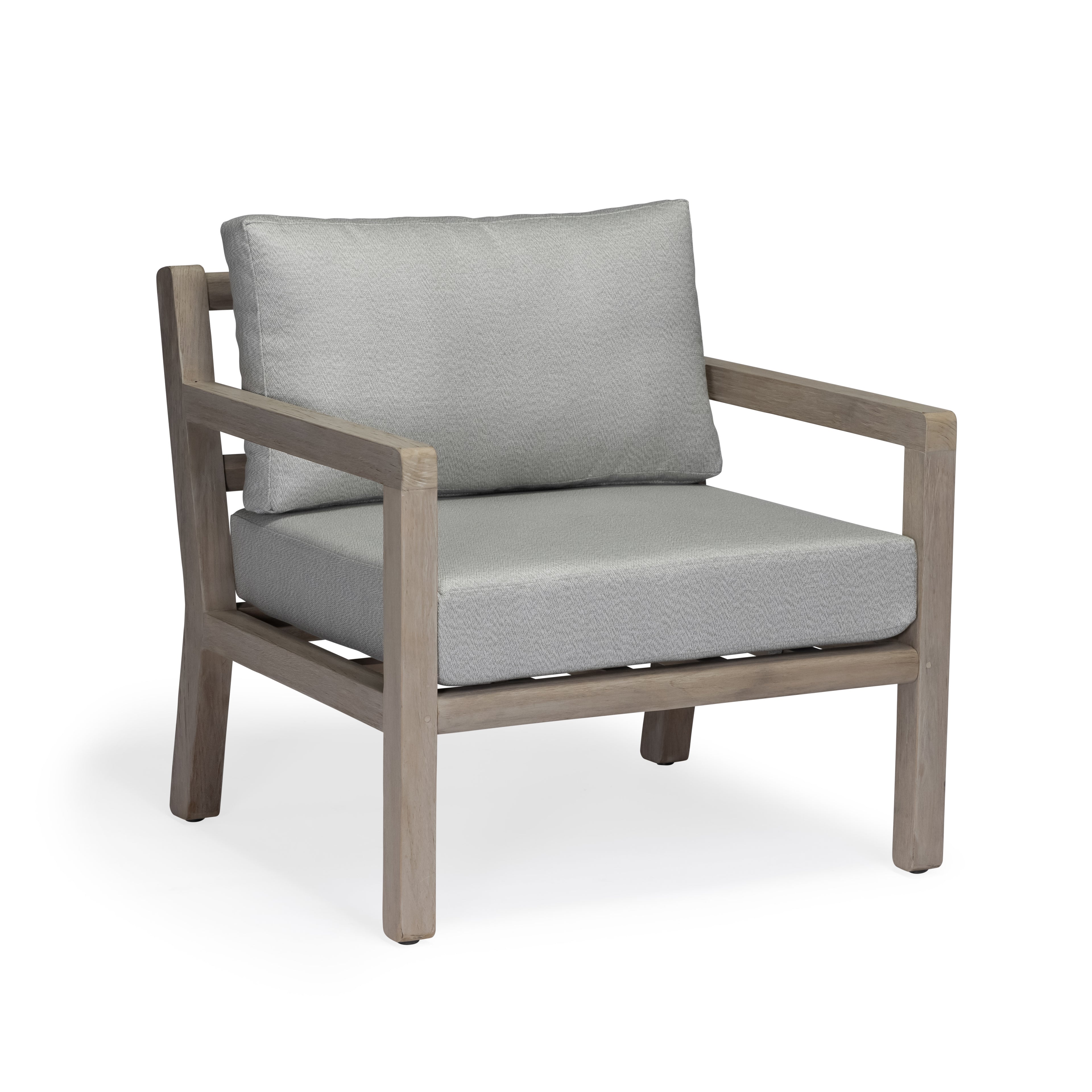 The Juliet Weathered Teak Outdoor Club Chair blends classic craftsmanship with a relaxed, rustic charm. Crafted from A-grade teak, it features a wire-brushed Golden Care finish, giving it a beautifully weathered look right from the start—no waiting required. Designed for both style and comfort, this chair includes a plush cushion in your choice of fabric, allowing you to customize it to suit your outdoor space. Built to last a lifetime, the Juliet Club Chair is perfect for lounging in sophistication. Pair it with the Juliet Weathered Sofa Collection for a timeless and inviting outdoor retreat.