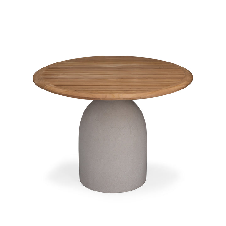 The Leni Teak and Concrete Outdoor Dining Table merges sculptural form with enduring strength, designed for both residential patios and commercial hospitality environments. Featuring a smooth concrete pedestal base in a refined natural hue, the table offers a grounded, contemporary look that pairs beautifully with its solid A-Grade teak tabletop. The combination of organic teak grain and cool, matte concrete creates a timeless contrast suited for restaurants, resorts, and café-style settings.
