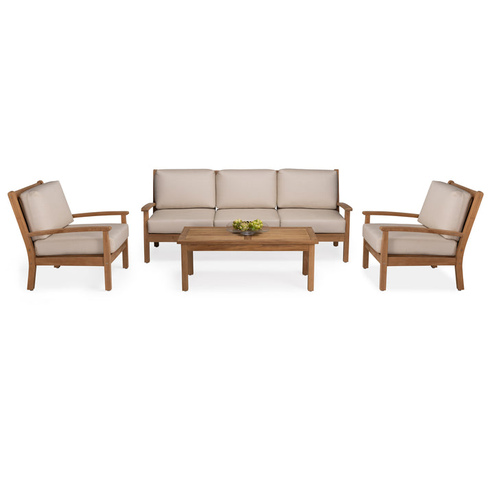 Some descriptiTeak is the most suitable material for outdoor furniture, but the grade of your teak makes all the difference. At Teak Warehouse, we use a-grade teak and other high end materials for outdoor durability.on