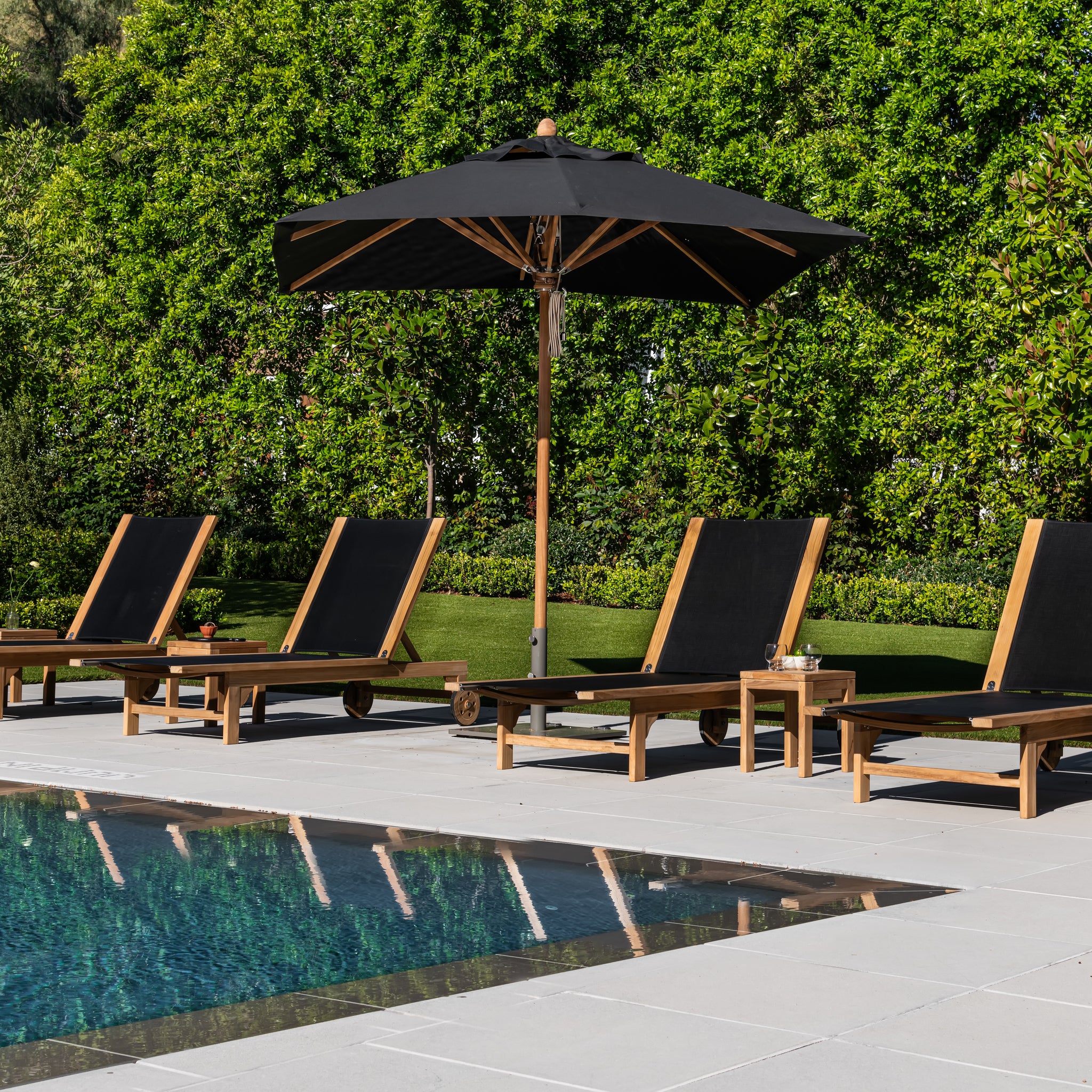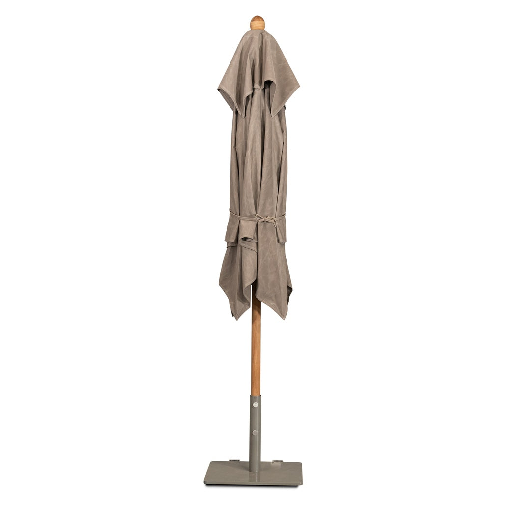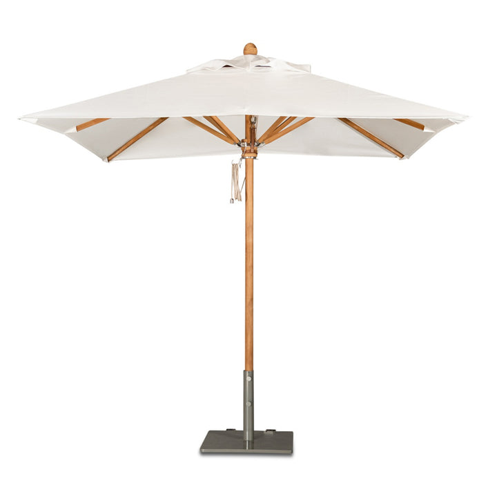 Experience the perfect blend of elegance and durability with the Santa Monica Square Umbrella featuring solid a-grade teak, marine-grade stainless steel, and Sunbrella canvas. Crafted from high-quality teak wood, this umbrella offers both beauty and strength, making it a stylish and practical addition to any outdoor space. With a 2.5-inch solid teak pole and a heavy-duty powder-coated base, this umbrella is designed to withstand the elements while providing the perfect shade for your outdoor relaxation. Plus, the canopy can be switched out over time, allowing you to update your outdoor decor with ease. Elevate your outdoor living experience with the Santa Monica Square Umbrella. (Base sold separately. Please note it is recommended to purchase the Santa Monica umbrella base with this umbrella, as other single-pole bases may not be compatible due to the 2.5" pole diameter.)