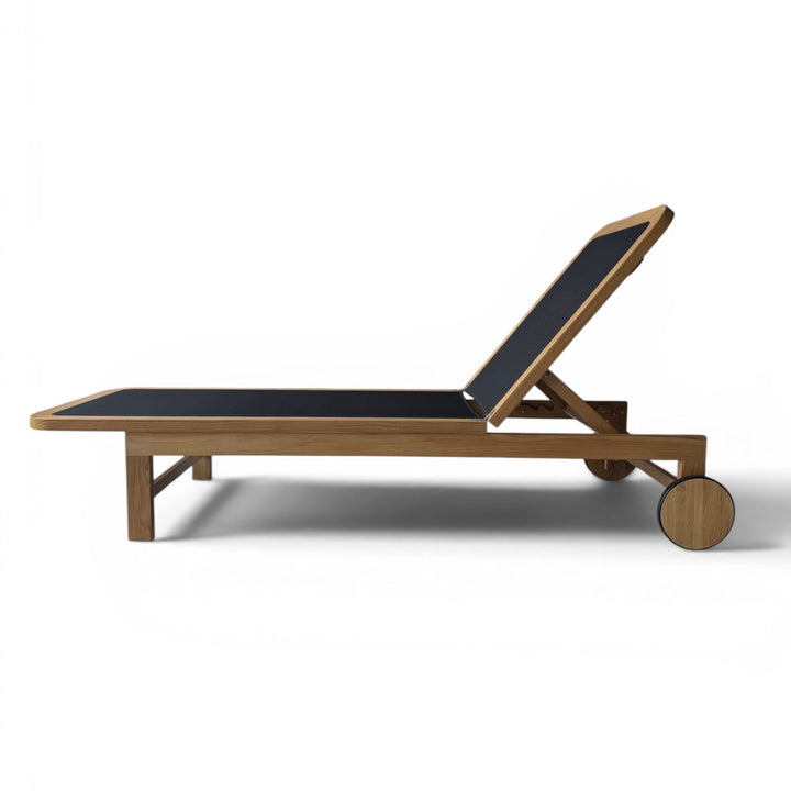 Santorini Curved Teak and Mesh Sun Lounger (Black)