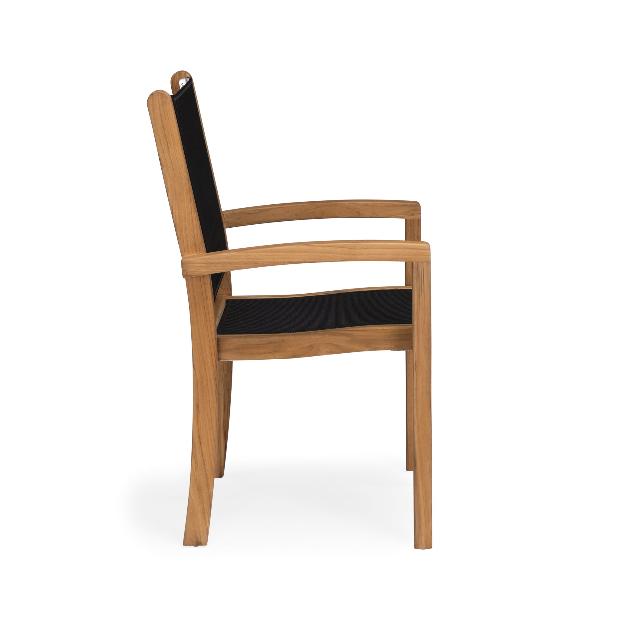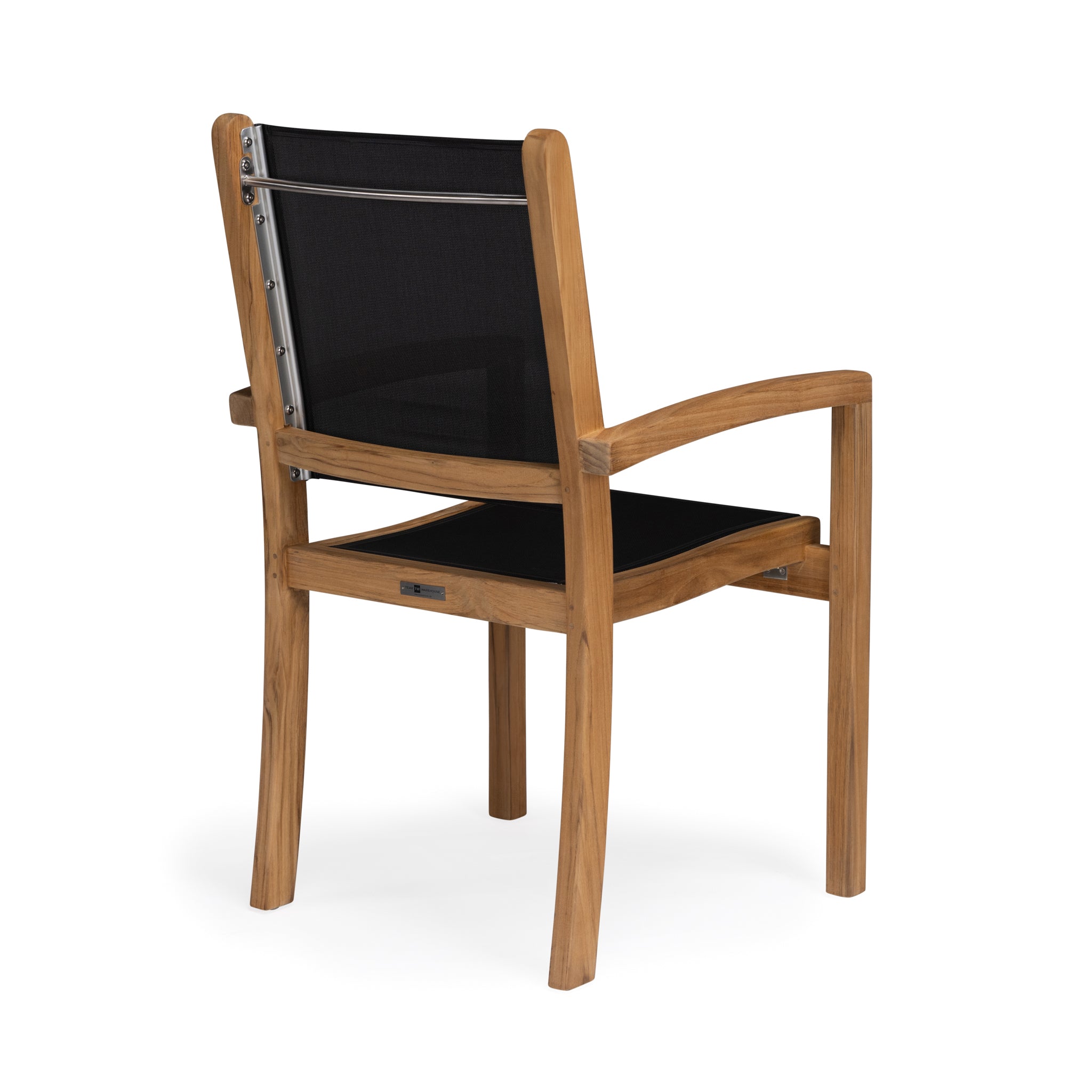 Santorini Teak and Mesh Stacking Outdoor Dining Arm Chair (Black)