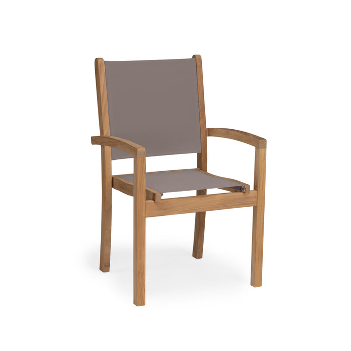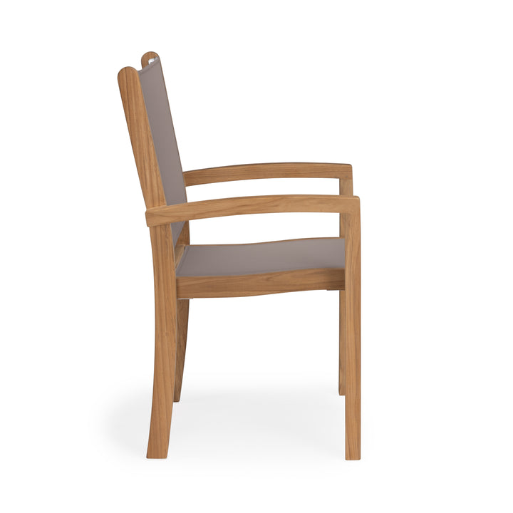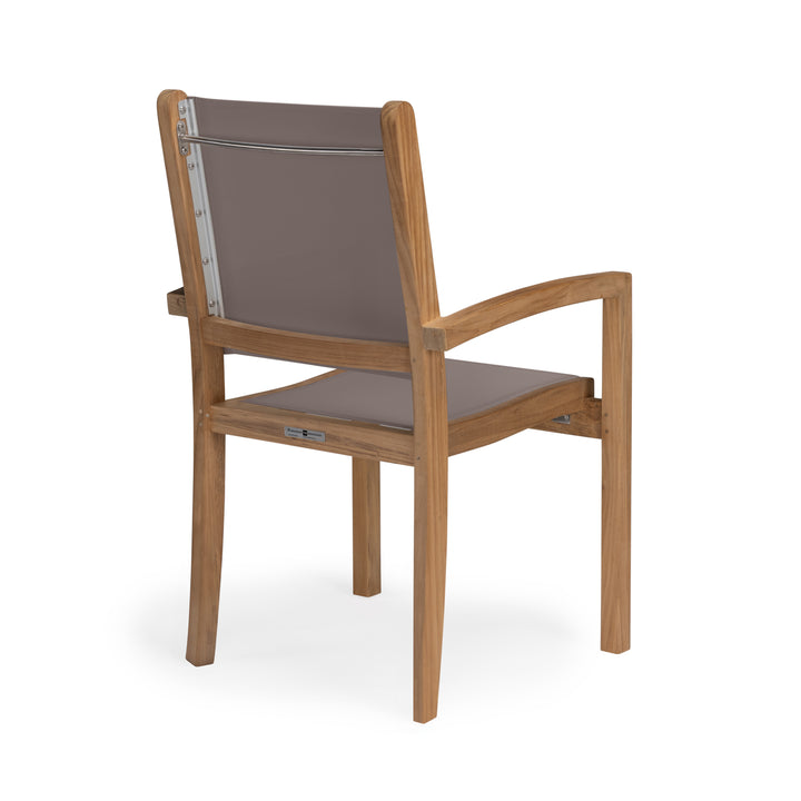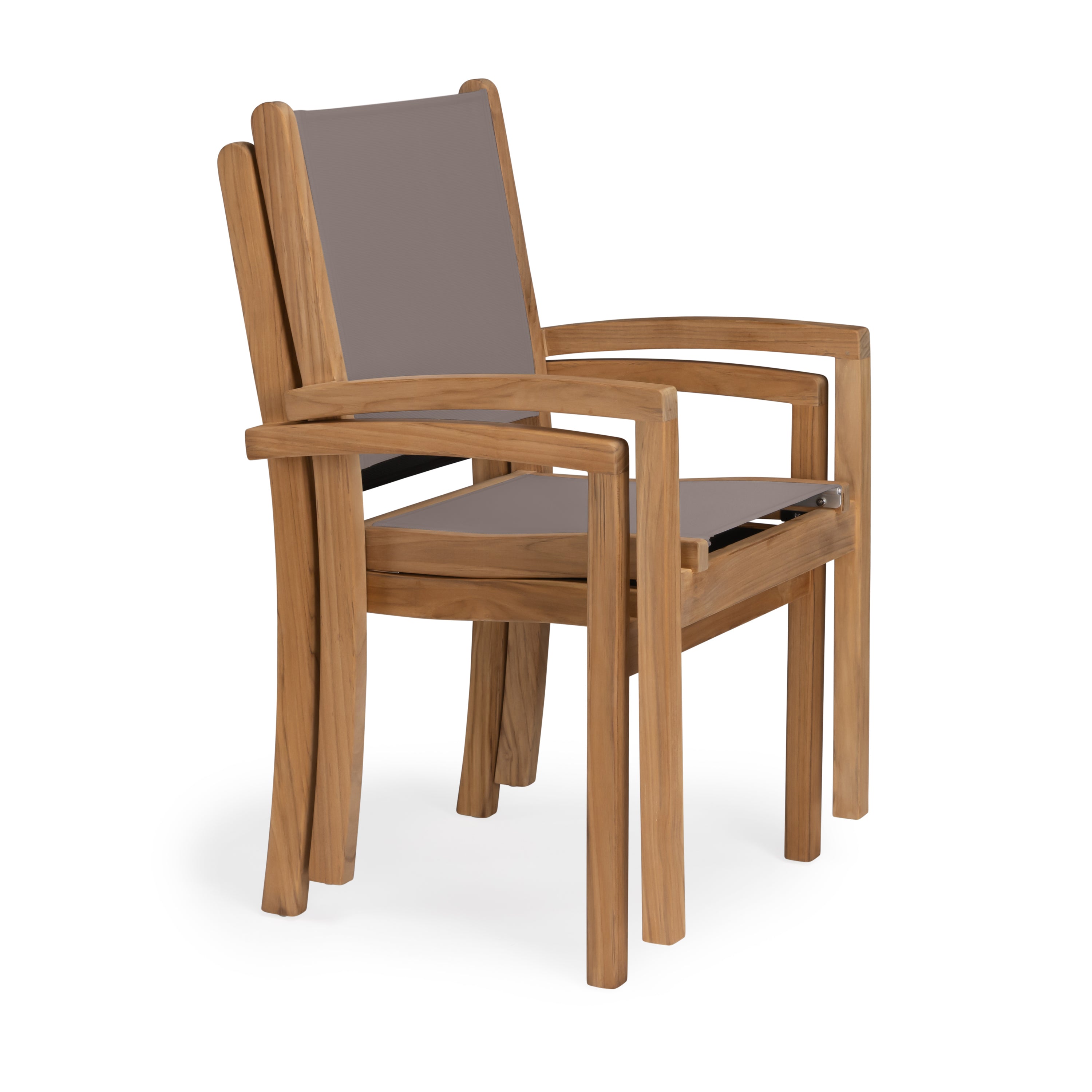 Santorini Teak and Mesh Stacking Outdoor Dining Arm Chair (Taupe)