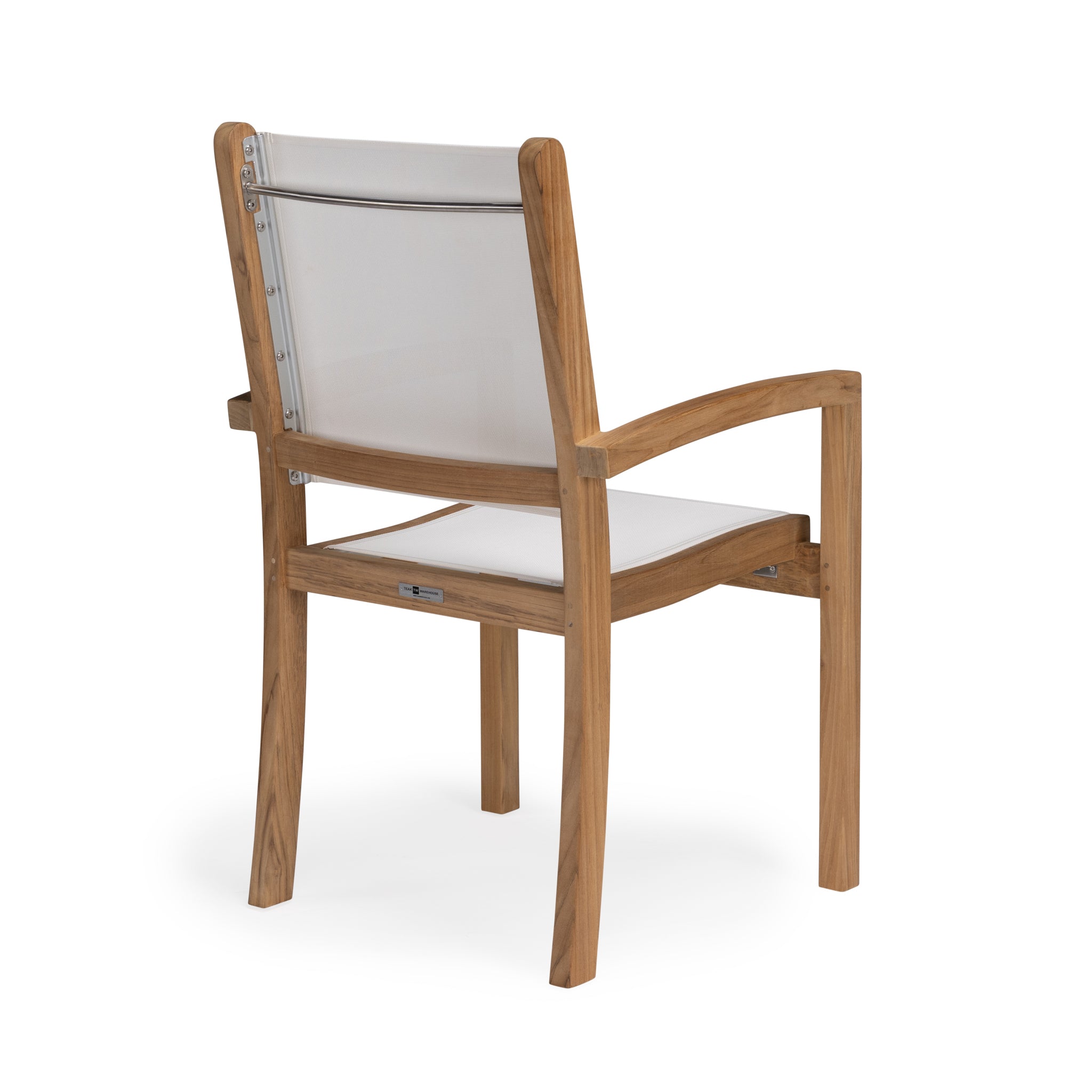 Santorini Teak and Mesh Stacking Outdoor Dining Arm Chair (White)