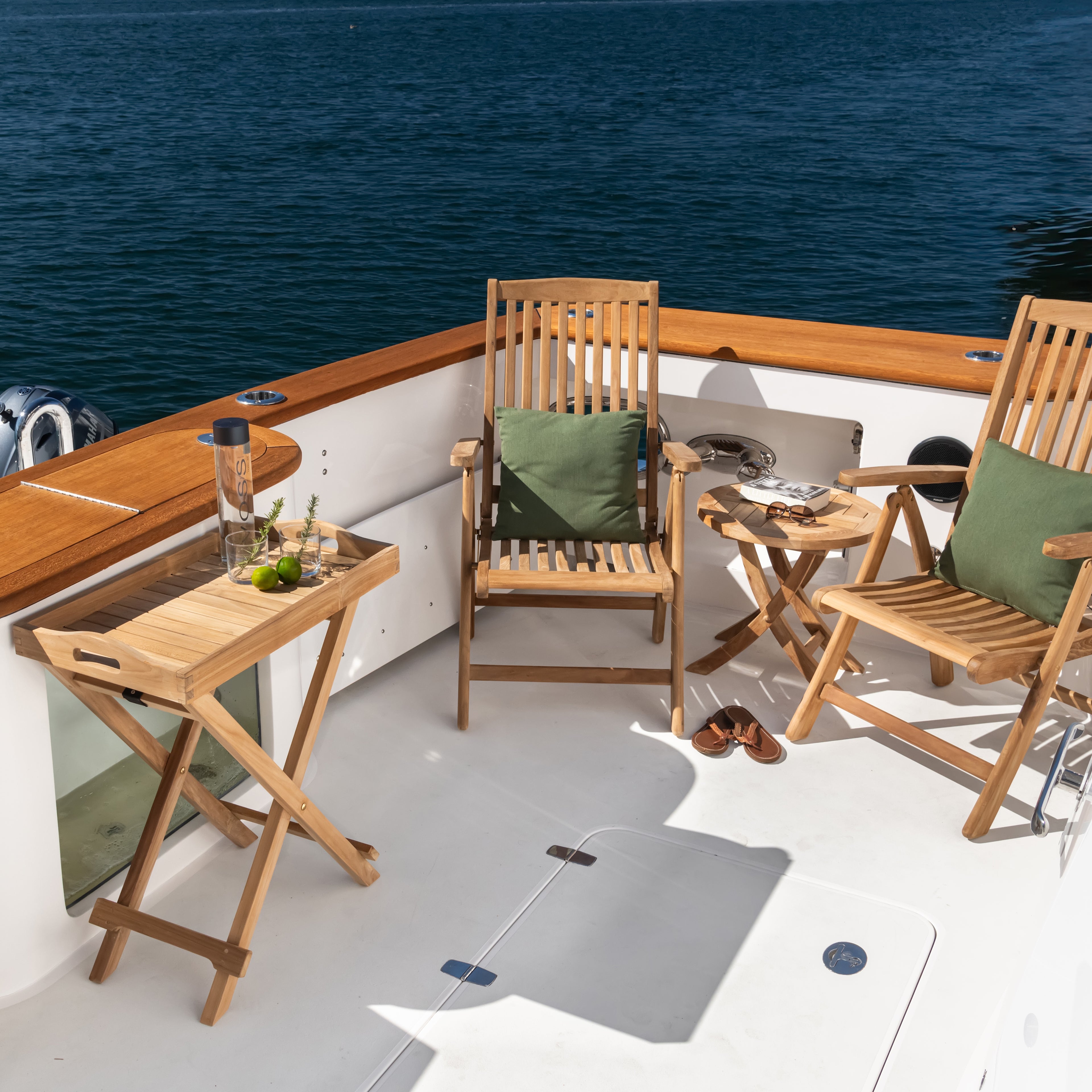 The Teak Serving Tray With Stand is a versatile, elegant addition to any marine vessel. Crafted from high-quality A-grade teak, this durable tray features clean lines and a sleek profile, enhancing any nautical setting with its natural, rich color and smooth surface. The foldable stand provides stability and easy storage, transforming the tray into a convenient table. Perfect for serving food and drinks or displaying decor, this tray is both practical and stylish for life on the water.
