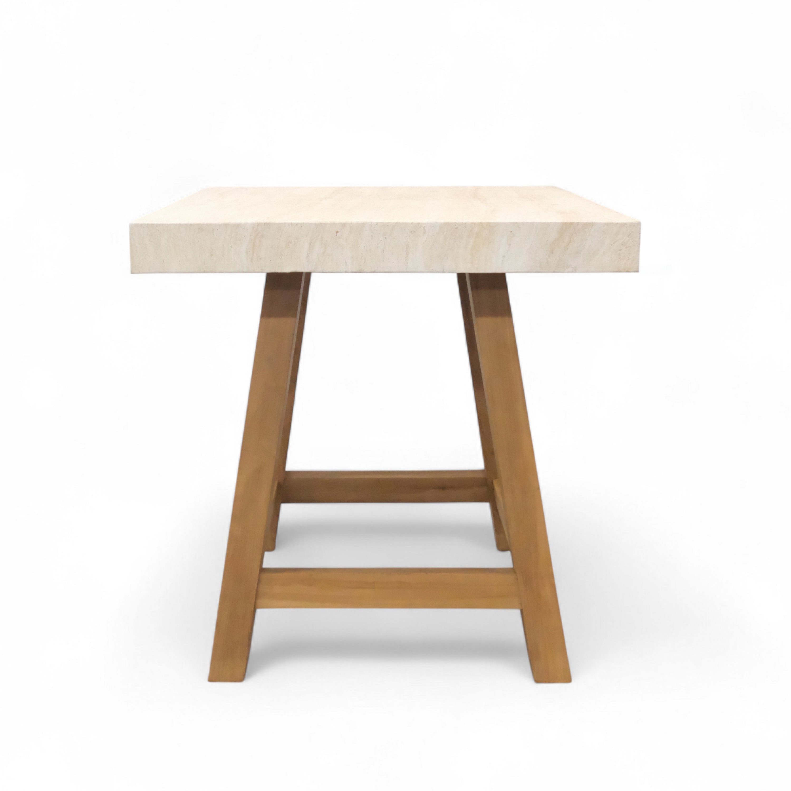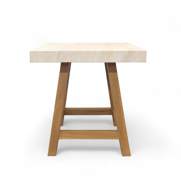 Elevate your outdoor entertaining with the Travertine and Teak Outdoor Bar Table in Grey. Featuring a beautifully textured grey concrete top with a travertine-style finish and a solid A-grade teak base, this bar-height table strikes the perfect balance between organic warmth and modern edge. Its compact yet substantial design is ideal for patios, poolside lounges, or rooftop gatherings. Durable, weather-resistant, and effortlessly stylish—this table is designed for casual drinks, elegant evenings, and everything in between.